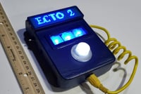The blue lights below the screen flash with connectivity like the lights of an internet modem. The silver dial glows bright white.